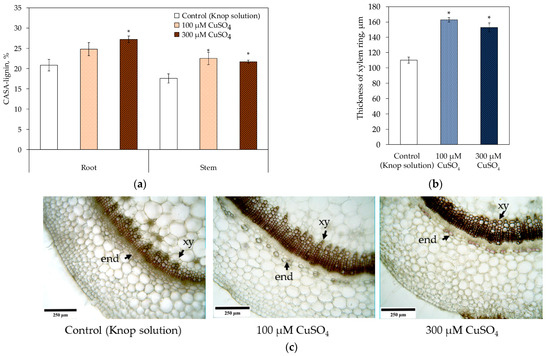 - Lin, C.-C.; Chen, L.-M.; Liu, Z.-H. Rapid effect of copper on lignin biosynthesis in soybean roots. Plant Sci. 2005, 168, 855–861. [Google Scholar] [CrossRef]