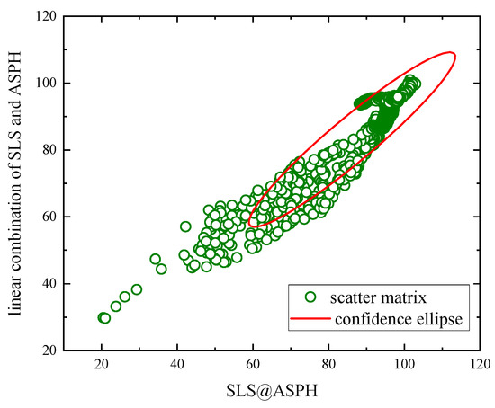 Confidence ellipse calculated from Pearson-type correlations for the SLS@ASPH complex in the solid state and the linear combination of the SLS and ASPH vibrational spectra.