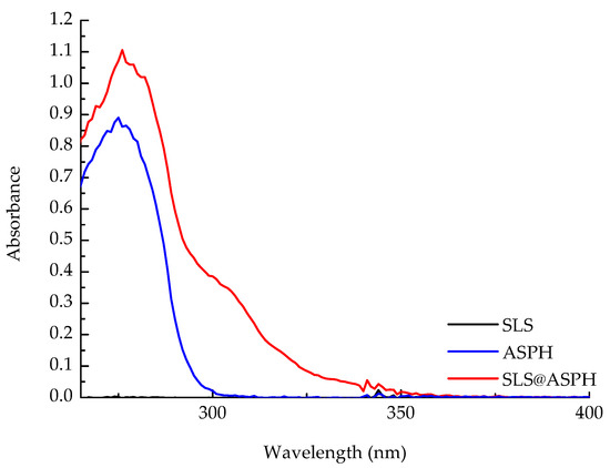 UV spectra of a DMSO solution of SLS@ASPH (2.7 mg/mL) and ASPH or SLS (0.30 mg/mL).