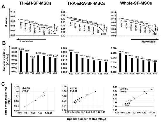 - Wang, Y.; Han, Z.; Yan, S.; Mao, A.; Wang, B.; Ren, H.; Chi, Y.; Han, Z. Evaluation of suitable reference gene for real-time PCR in human umbilical cord mesenchymal stem cells with long-term in vitro expansion. Vitr. Cell. Dev. Biol.-Anim. 2010, 46, 595–599. [Google Scholar] [CrossRef] [PubMed]