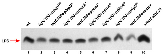 2.3. Overexpression of srrA, marA, yceJ and dksA also Restore LPS Amounts in lapC190 Bacteria