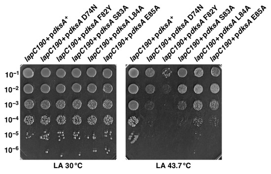 2.11. Multicopy Suppression of lapC190 Bacterial Defects Requires DksA’s PPIase and Transcriptional Activities