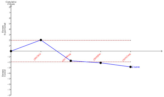 Finally, the outcomes of TSA performed for all three analyses indicate that the sample size is sufficient to yield valid results and no future studies on the same subject are needed. These outcomes are shown in Figure 5, Figure 6 and Figure 7.