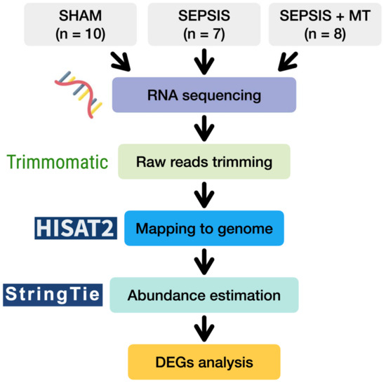 A flow diagram of transcriptome analysis of SHAM, SEPSIS, and SEPSIS + MT.
