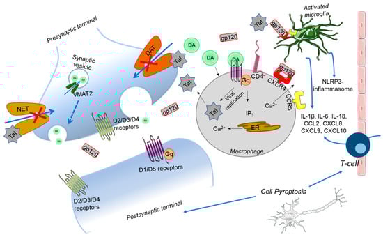 - Fitting, S.; Booze, R.M.; Mactutus, C.F. HIV-1 proteins, Tat and gp120, target the developing dopamine system. Curr. HIV Res. 2015, 13, 21–42. [Google Scholar] [CrossRef]