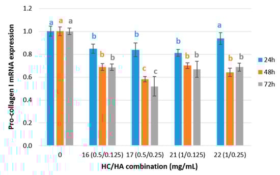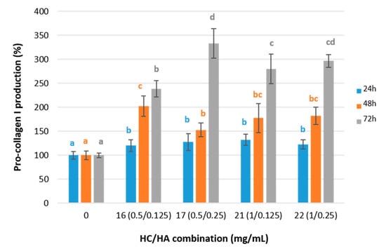 2.3. Effect of HC and HA Combination on mRNA Pro-Collagen I Expression of Fibroblast Culture