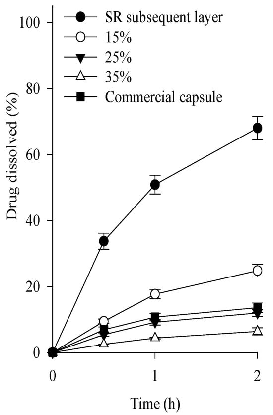 - Park, J.S.; Shim, J.Y.; Park, J.S.; Lee, M.J.; Kang, J.M.; Lee, S.H.; Kwon, M.C.; Choi, Y.W.; Jeong, S.H. Formulation Variation and in Vitro-in Vivo Correlation for a Rapidly Swellable Three-Layered Tablet of Tamsulosin HCl. Chem. Pharm. Bull. 2011, 59, 529–535. [Google Scholar] [CrossRef] [PubMed][Green Version]