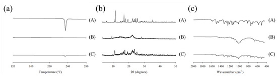 3.5. Morphology, Differential Scanning Calorimetry (DSC), Powder X-ray Diffraction (PXRD), Fourier Transform Infrared Spectroscopy (FT-IR)