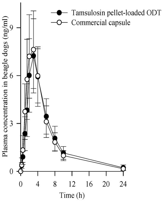 Cho, H.J.; Kim, J.S.; Jin, S.G.; Choi, H.-G. Development of Novel Tamsulosin Pellet-Loaded Oral Disintegrating Tablet Bioequivalent to Commercial Capsule in Beagle Dogs Using Microcrystalline Cellulose and Mannitol. Int. J. Mol. Sci. 2023, 24, 15393. https://doi.org/10.3390/ijms242015393