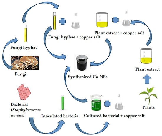 Furthermore, microorganisms have great potential as inexpensive, non-toxic, and environmentally friendly materials that do not demand much energy for synthesizing metal and metal oxide NPs, compared to the physicochemical synthesis techniques. Among the various mechanisms for the green synthesis of nanoparticles, the ones that perform extracellular synthesis are particularly important. This route eliminates the necessity of expensive and complex downstream processing steps to recover intracellular nanoparticles [41].