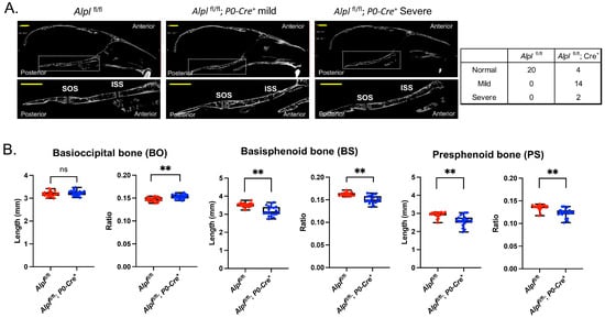 2.2. P0-Cre Alpl Deletion Causes Abnormal Development of the Anterior but Not the Posterior Cranial Base