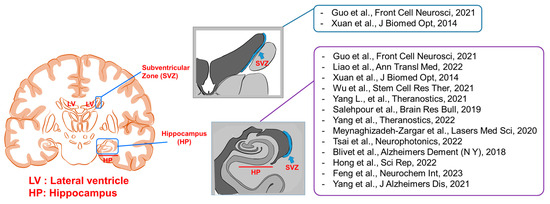 Anatomical targets for neurogenesis through photobiomodulation [35,36,37,38,39,40,41,42,43,44,45,46,47].