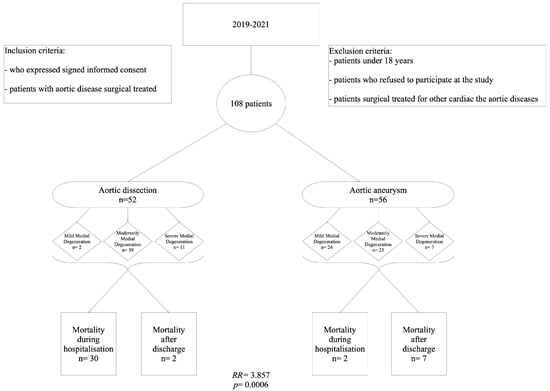 An important issue is the possible link between histological findings and the risk of mortality after an ascendant aortic replacement. Considering the patient’s age, gender, and pre-existing health conditions, as is done for preoperative anticoagulant therapy, might allow the patient’s postoperative management to be individualized to obtain a lower mortality rate [,,,,].