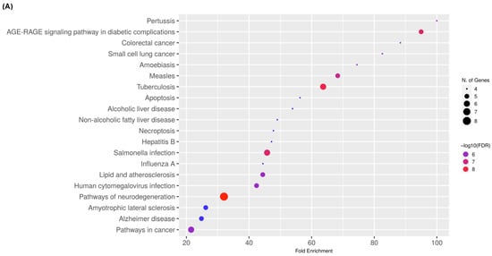 Targets of microRNA (miRNA) were predicted by applying the miRabel database, which has aggregated all human results based on four important miRNA target prediction algorithms (miRanda, PITA, SVmicrO, and TargetScan) (LITIS lab, University of Rouen Normandy, Mont-Saint-Aignan, France; http://bioinfo.univ-rouen.fr/mirabel/ (accessed on 12 June 2022)) [68]. These algorithms also specified additional characteristics for potential miRNA targets in the platform.