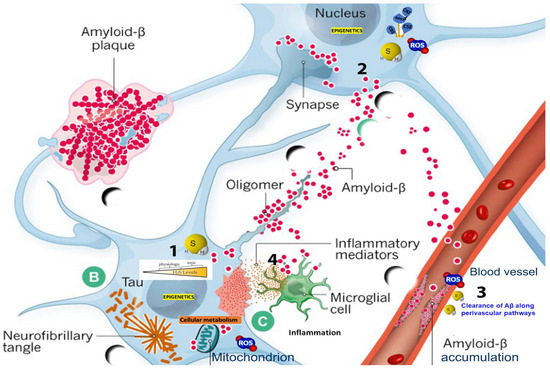 - Given that ROS can activate various inflammatory cascades, the ROS-scavenging property of H2S offers an indirect anti-inflammatory effect. Diminished H2S levels can accentuate oxidative stress, which can further stoke the flames of neuroinflammation, potentiating the neurodegenerative cascade in AD [80].