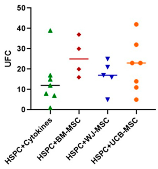 2.6. Evaluation of the Clonogenic Potential of Hematopoietic Stem Progenitor Cells in Co-Culture with Mesenchymal Stromal Cells from Perinatal Tissues