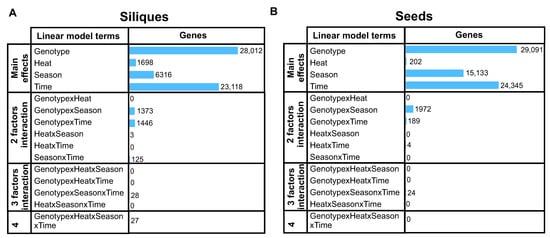 - Canales, J.; Verdejo, J.; Carrasco-Puga, G.; Castillo, F.M.; Arenas-M, A.; Calderini, D.F. Transcriptome Analysis of Seed Weight Plasticity in Brassica napus. Int. J. Mol. Sci. 2021, 22, 4449. [Google Scholar] [CrossRef]