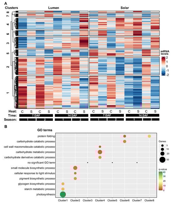 2.3. Hierarchical Clustering Unveils Patterns of Heat-Induced Gene Expression in Siliques