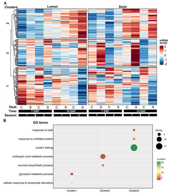 2.4. Hierarchical Clustering Reveals Three Distinct Patterns of Heat-Responsive Gene Expression in Seeds