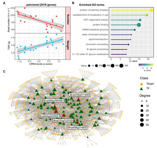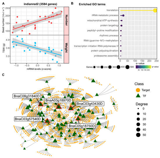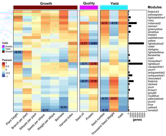 2.6. Co-Expression Network Analysis Reveals Major Modules for Rapeseed Yield and Quality