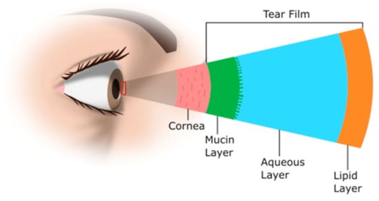 The tear film, consisting of lipid, aqueous, and mucin layers, represents the first obstacle in topical drug delivery (Figure 2). Lacrimal fluid secretion and reflex blinking cause rapid tear turnover, removing a substantial fraction of the topically applied drug. Specifically, the lacrimal fluid turnover rate of approximately 1 µL/min poses a significant limitation on drug retention [,].