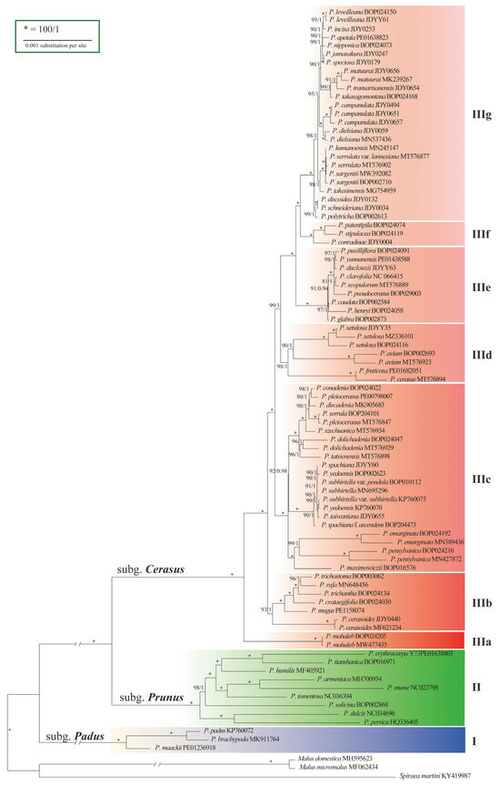 3.1. Phylogenetic Relationship within Subg. Cerasus