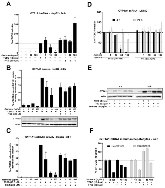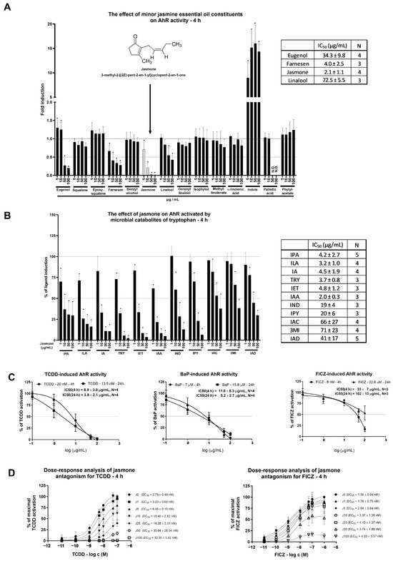 2.2. Jasmone Suppresses Ligand-Triggered AhR-Regulated Genes