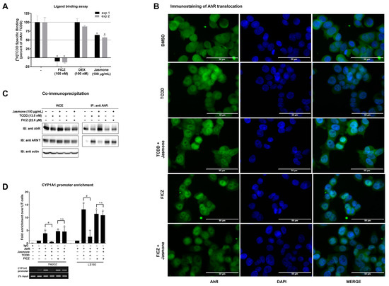 2.3. Jasmone Affects the Process of Dimerization in Ligand-Triggered AhR Signaling