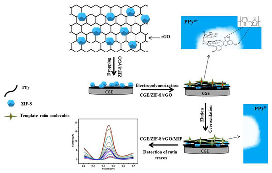 - El Jaouhari, A.; Yan, L.; Zhu, J.; Zhao, D.; Khan, Z.H.; Liu, X. Enhanced molecular imprinted electrochemical sensor based on zeolitic imidazolate framework/reduced graphene oxide for highly recognition of rutin. Anal. Chim. Acta 2020, 1106, 103–114. [Google Scholar] [CrossRef]