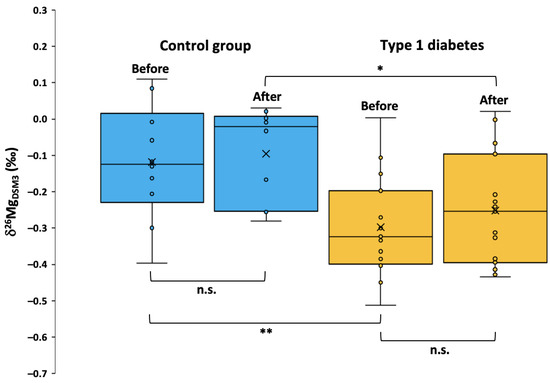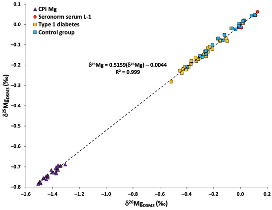 - Grigoryan, R.; Costas-Rodríguez, M.; Van Laecke, S.; Speeckaert, M.; Lapauw, B.; Vanhaecke, F. Multi-Collector ICP-Mass Spectrometry Reveals Changes in the Serum Mg Isotopic Composition in Diabetes Type I Patients. J. Anal. At. Spectrom. 2019, 34, 1514–1521. [Google Scholar] [CrossRef]