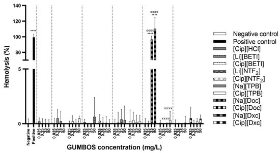 - Bastos, J.C.; Vieira, N.S.M.; Gaspar, M.M.; Pereiro, A.B.; Araújo, J.M.M. Human Cytotoxicity, Hemolytic Activity, Anti-Inflammatory Activity and Aqueous Solubility of Ibuprofen-Based Ionic Liquids. Sustain. Chem. 2022, 3, 358–375. [Google Scholar] [CrossRef]