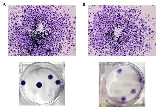 Crystal violet-stained images for control (A) and cisPt solution (B) groups.