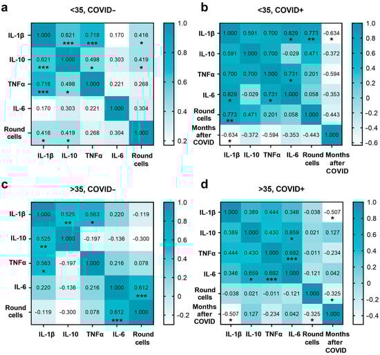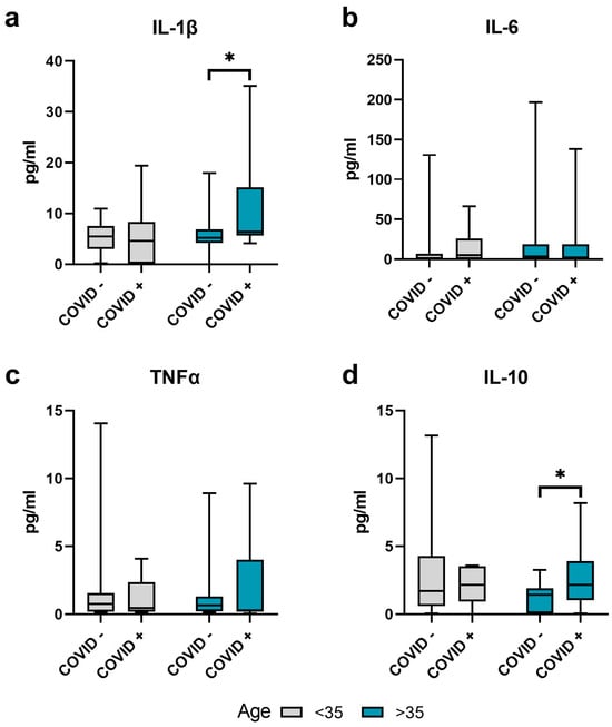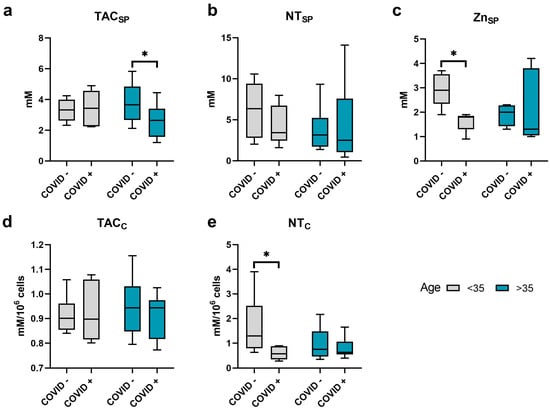 | Parameters | <35, COVID− | <35, COVID+ | >35, COVID− | >35, COVID+ |