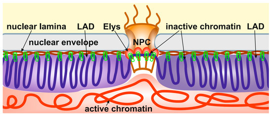 nuclear lamina; nuclear periphery; nuclear envelope; lamin; LAD; TAD; heterochromatin; nuclear pore complex; nucleoporin; Elys 1. Introduction