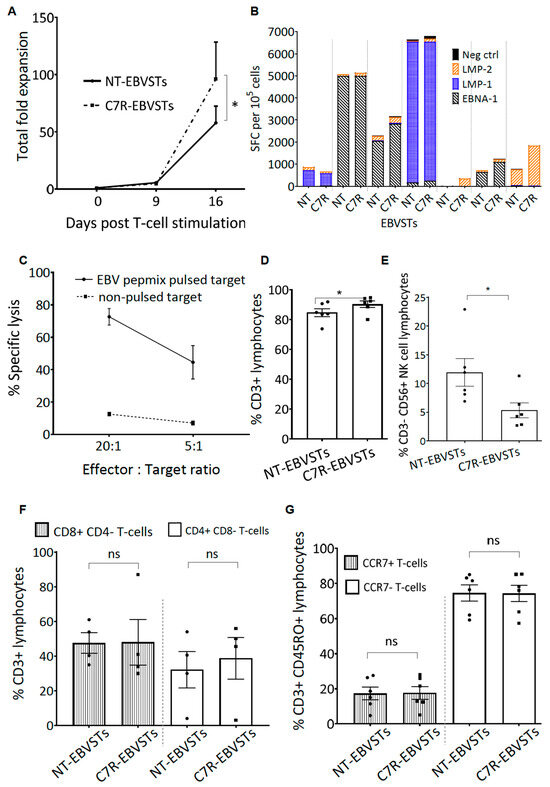 2.2. C7R-EBVSTs Maintain EBV Antigen Specificity and Cytotoxic Function