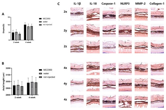 Table 2. Immunoreactivity scores of the sclera of wild-type mice with or without MCC950 injection (n = 5).