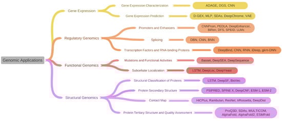 Taxonomy of genomic applications and corresponding deep learning models.
