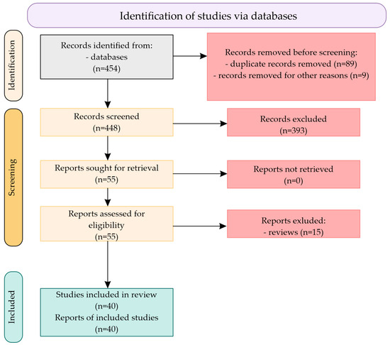 Each analyzed SNP was also confirmed in the dbSNP of NIH database [www.ncbi.nlm.nih.gov/snp]. A total of 454 citations were identified in the literature search, screening of titles and abstracts excluded 393 manuscripts, and 55 potentially relevant reports from the electronic search were retrieved for full-text review. Of these potentially relevant articles, 15 publications were excluded for various reasons, and 40 publications met the inclusion criteria and were included in this report. Figure 3 shows the scheme of literature searching method.