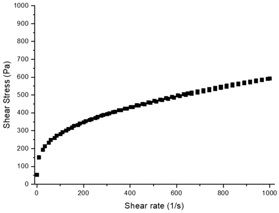 Shear rate-shear stress plot of the topical formulation containing NLC with Copaifera langsdorffii oleoresin.