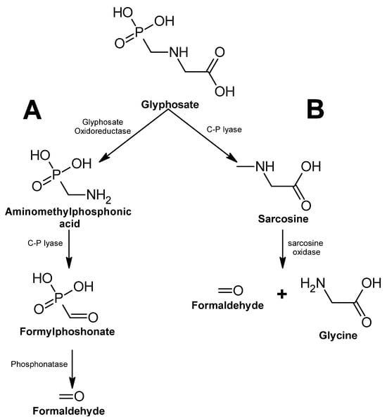 - Hove-Jensen, B.; Zechel, D.L.; Jochimsen, B. Utilization of Glyphosate as Phosphate Source: Biochemistry and Genetics of Bacterial Carbon-Phosphorus Lyase. Microbiol. Mol. Biol. Rev. 2014, 78, 176–197. [Google Scholar] [CrossRef]
