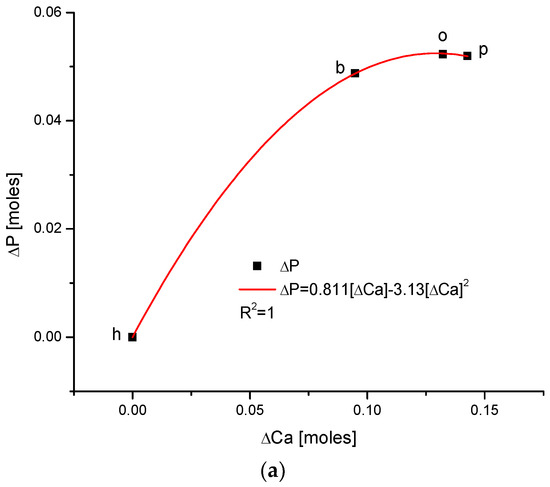 As one could expect, the relationship between the growth of the two main components of bioapatite is positively correlated in a paraboloidal manner, not a linear one, with the coefficient of determination, R2, being equal to 1. The inverted correlation is valid for the ΔMg and ΔCa pair (Figure 5). It supplements the image of all the correlations observed for the enamels of four organisms.
