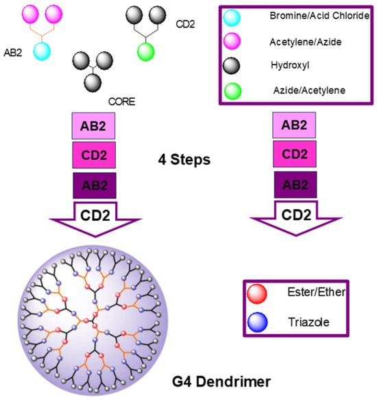 - Walter, M.V.; Malkoch, M. Simplifying the Synthesis of Dendrimers: Accelerated Approaches. Chem. Soc. Rev. 2012, 41, 4593–4609. [Google Scholar] [CrossRef]