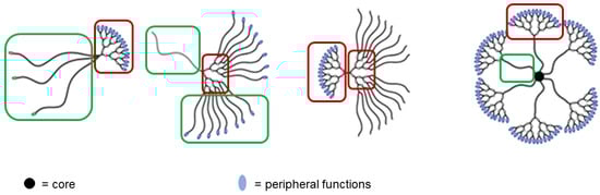 - Frauenrath, H. Dendronized Polymers—Building a New Bridge from Molecules to Nanoscopic Objects. Prog. Polym. Sci. 2005, 30, 325–384. [Google Scholar] [CrossRef]