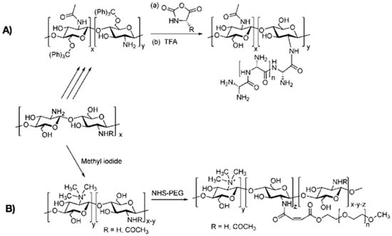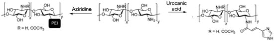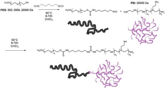 There are various synthetic strategies for conjugating PEG and PEI covalently, including a two-step reaction. First, PEGs are activated using epoxy groups or isocyanates [78], and then the activated PEG is reacted with the amino groups of PEIs.