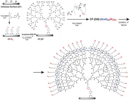 - Montañez, M.I.; Hed, Y.; Utsel, S.; Ropponen, J.; Malmström, E.; Wågberg, L.; Hult, A.; Malkoch, M. Bifunctional Dendronized Cellulose Surfaces as Biosensors. Biomacromolecules 2011, 12, 2114–2125. [Google Scholar] [CrossRef]