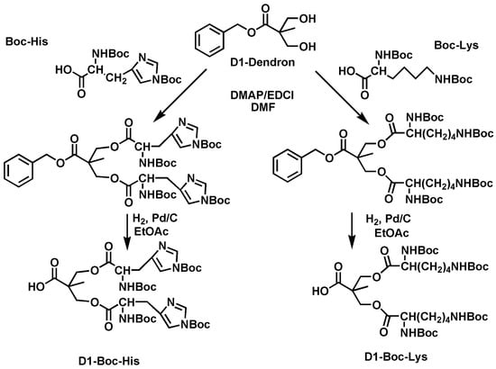 - Goodwin, A.P.; Lam, S.S.; Fréchet, J.M.J. Rapid, Efficient Synthesis of Heterobifunctional Biodegradable Dendrimers. J. Am. Chem. Soc. 2007, 129, 6994–6995. [Google Scholar] [CrossRef]