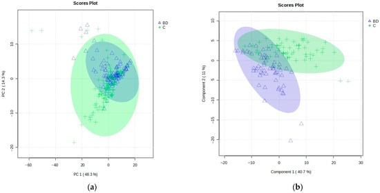- Xia, J.; Psychogios, N.; Young, N.; Wishart, D.S. MetaboAnalyst: A Web Server for Metabolomic Data Analysis and Interpretation. Nucleic Acids Res. 2009, 37, W652–W660. [Google Scholar] [CrossRef] [PubMed]