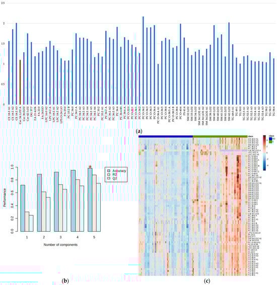 | No. | Retention Time (min) | VIP Value | VIP Feature Assignment | Measured m/z * | Ion Mode Adduct | Proposed Formula | Lipid Assignment | Lipid Class |