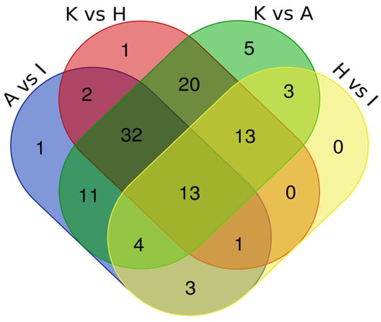 Different abundance proteins identified by mass spectrometry present in all comparisons.
