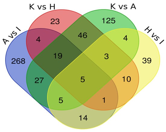 Different abundance in the metabolites identified by mass spectrometry in all comparisons.
